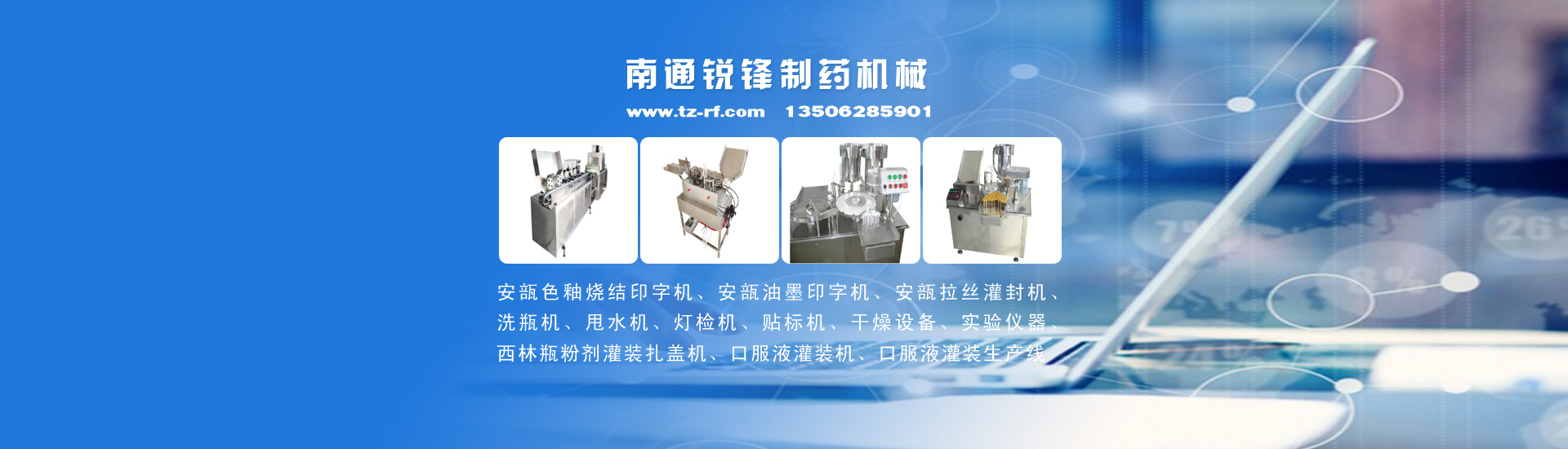 公司主要產(chǎn)品有:安瓿色釉燒結(jié)印字機(jī)、安瓿油墨印字機(jī)、安瓿拉絲灌封機(jī)、西林瓶粉劑灌裝機(jī)、洗瓶機(jī)、安瓿甩水機(jī)、燈檢機(jī)、貼標(biāo)機(jī)、口服液灌裝機(jī)、口服液灌裝生產(chǎn)線、制藥機(jī)械、干燥設(shè)備、實(shí)驗(yàn)儀器等,并可根據(jù)客戶要求非標(biāo)定制生產(chǎn)。產(chǎn)品廣泛用于制藥、食品、保健品、化妝品等行業(yè)。